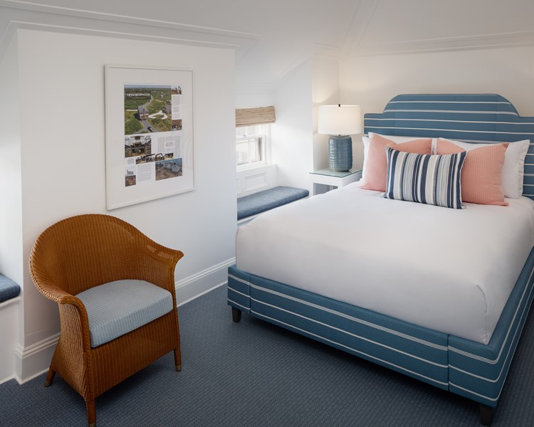 Choose from 20 uniquely styled guest rooms and six private cottages, each designed with coastal colors, rich textures, and refined touches. Enjoy luxury linens, curated artwork, and thoughtful amenities that make 76 Main the perfect Nantucket accommodation for relaxation and inspiration.